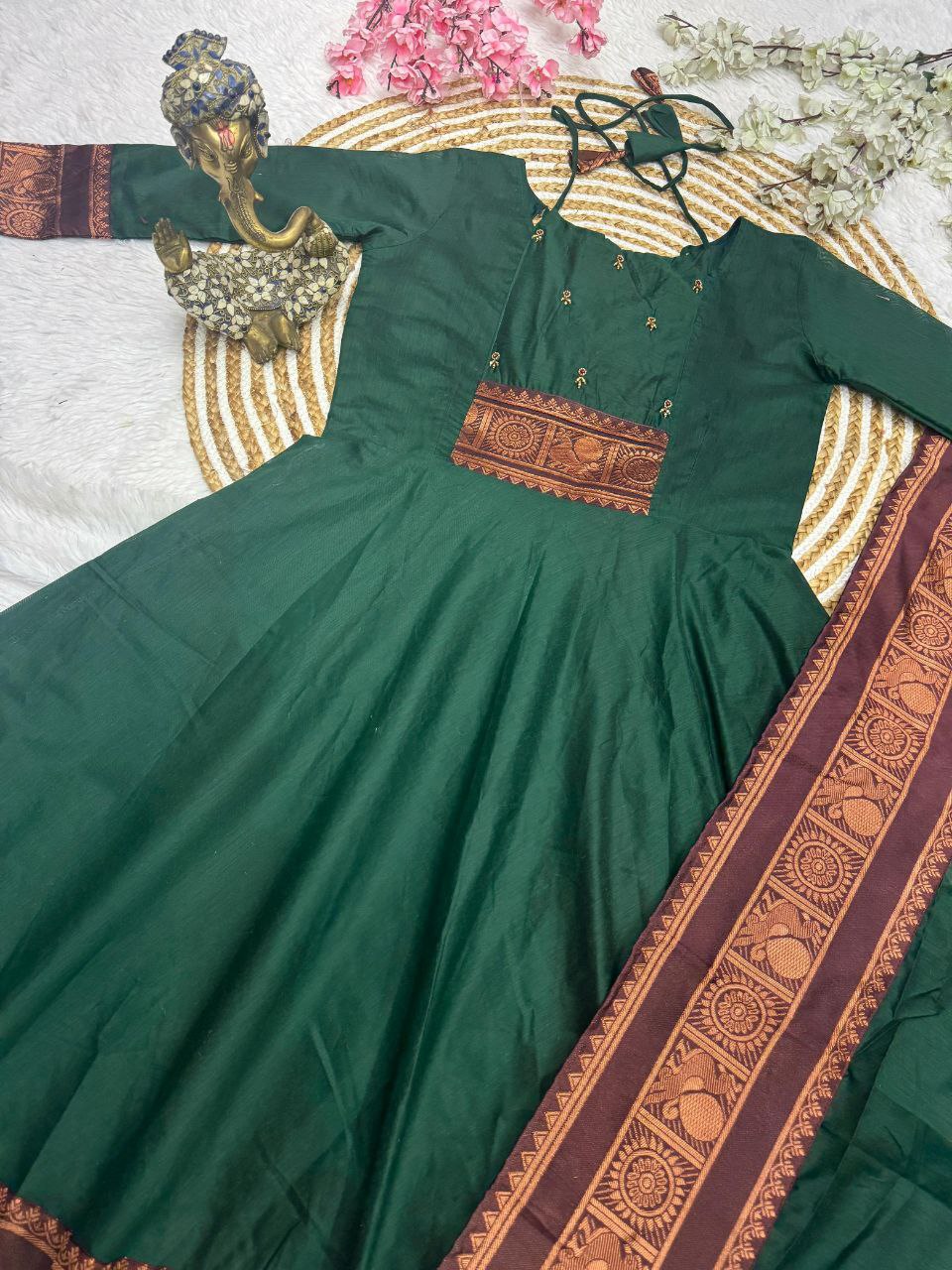 Pattu Cotton Handwork Jacquard Zari Border Traditional Top & Dupatta Set